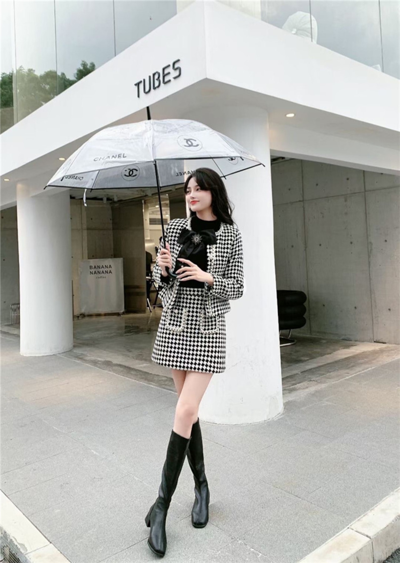 凛とした気質を漂わせるハイウエスト2点セット。優雅なAラインコートと可愛らしいミニスカートで、あなたのスタイルを格上げします。格子縞のデザインが上品さを引き立て、シンプルながらも個性的な印象を与えます。
