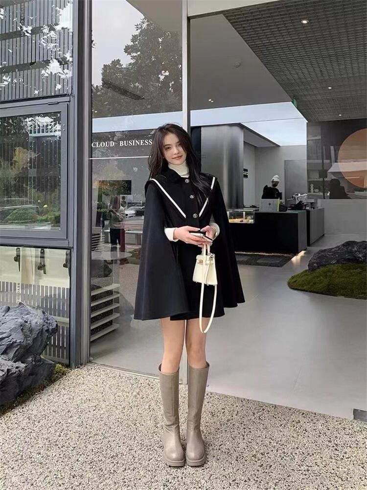 韓国ファッション ハイエンド ファッション ポンチョ チェスターコート 気質 ギャザリング
