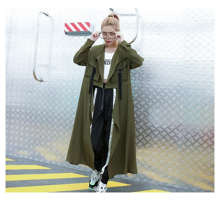 トレンチコート ジャケットロング丈 ストリート ピュアカラー ゆったりする コート