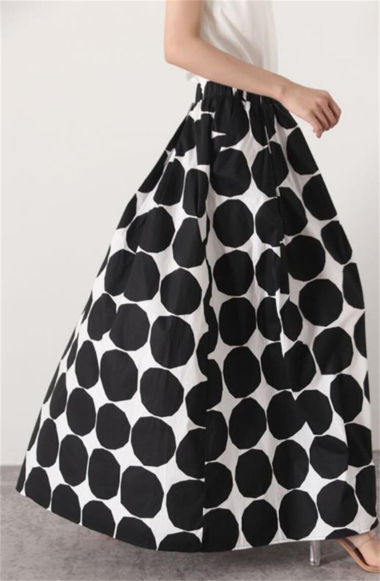 Aライン お出かけ ロングスカート 気質 レトロ ドット ハイウエスト トレンド