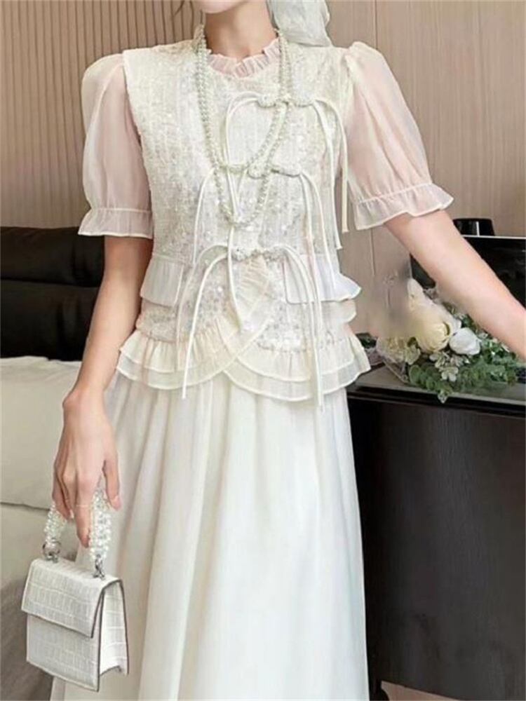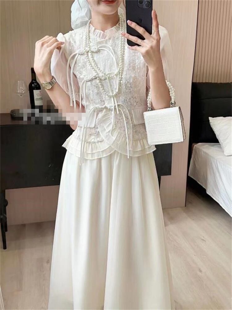 夏服 レトロ ロングスカート エレガント トレンド 2点セット トップス 上着